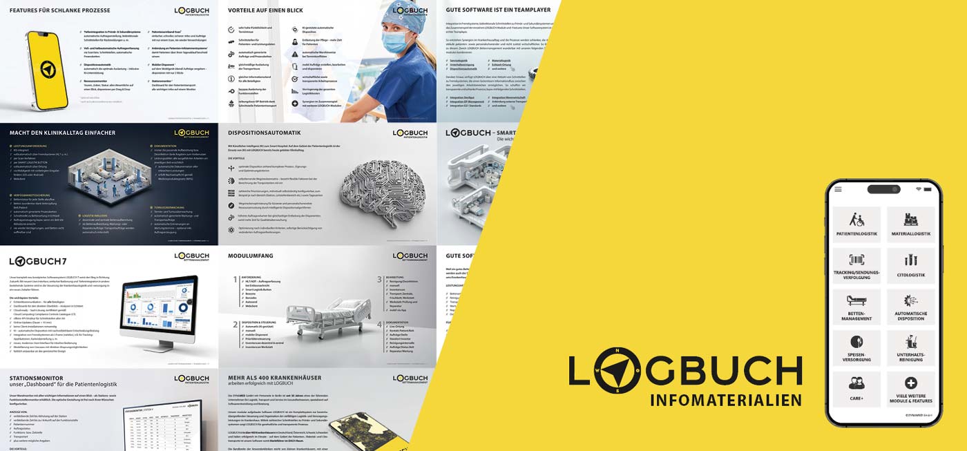 Software für Patiententransporte, Materiallogistik, Sendungsverfolgung, Bettenmanagement und mehr: LOGBUCH auf den Punkt gebracht – in unseren Broschüren und Flyern.